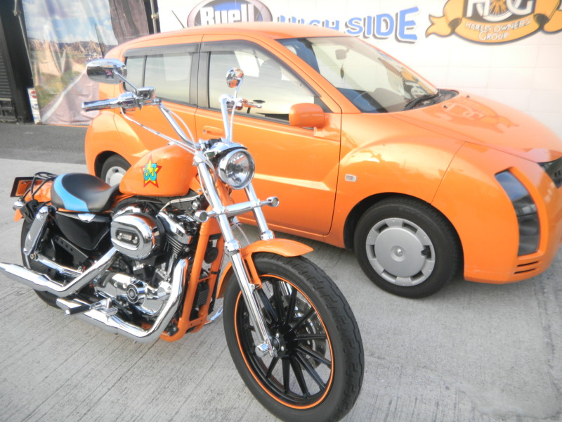 | '08 XL1200L ベビーエイプハンドルバー(配線中通し) グリップ(フレイム) スイッチボックス、スイッチキャップ、Fマスター、 ウインカー(POSHニュースクール) メーター移設(トランプ) クラッチケーブル、ブレーキホース、スロットルケーブル( フレーム(カスタムペイントbyRUSTIC) タンク(スモールタンクに変更、カスタムペイント byRUSTIC) Fフェンダー、Rフェンダー( FRホイール(カスタムペイントbyRUSTIC) ソロシート(レザー張替え、ステッチ byZIP MOTOR PRO) Fフォークボトムケース(クローム) クロームアクスルカバー クロームスイングアーム スイングアームピボットカバー(クローム) リアサス(プログレッシブ) ショートサイドスタンド クロームヘッドライトバイザー アッパーベルトカバー(XL1200N) デタッチャブルキャリア LEDテールランプ フューエルキャップメダリオン カスタムキー(SNAP-ON) |