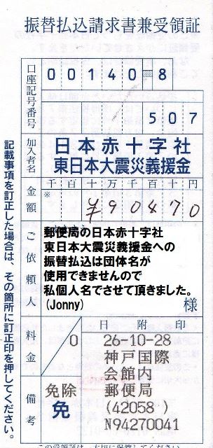 集金した参加費から会場費を支払った残金も東日本大震災義援金に寄付させて頂きます。